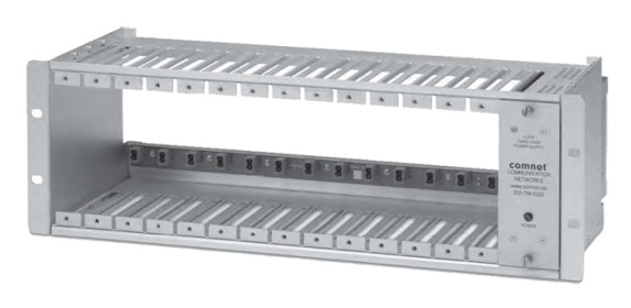Modulární box pro karty na instalaci do datového rozvaděče. Optické konvertory, maximálně 14 modulů CNFE2MC/IN, snadná instalace, napájení 120-230 VAC.