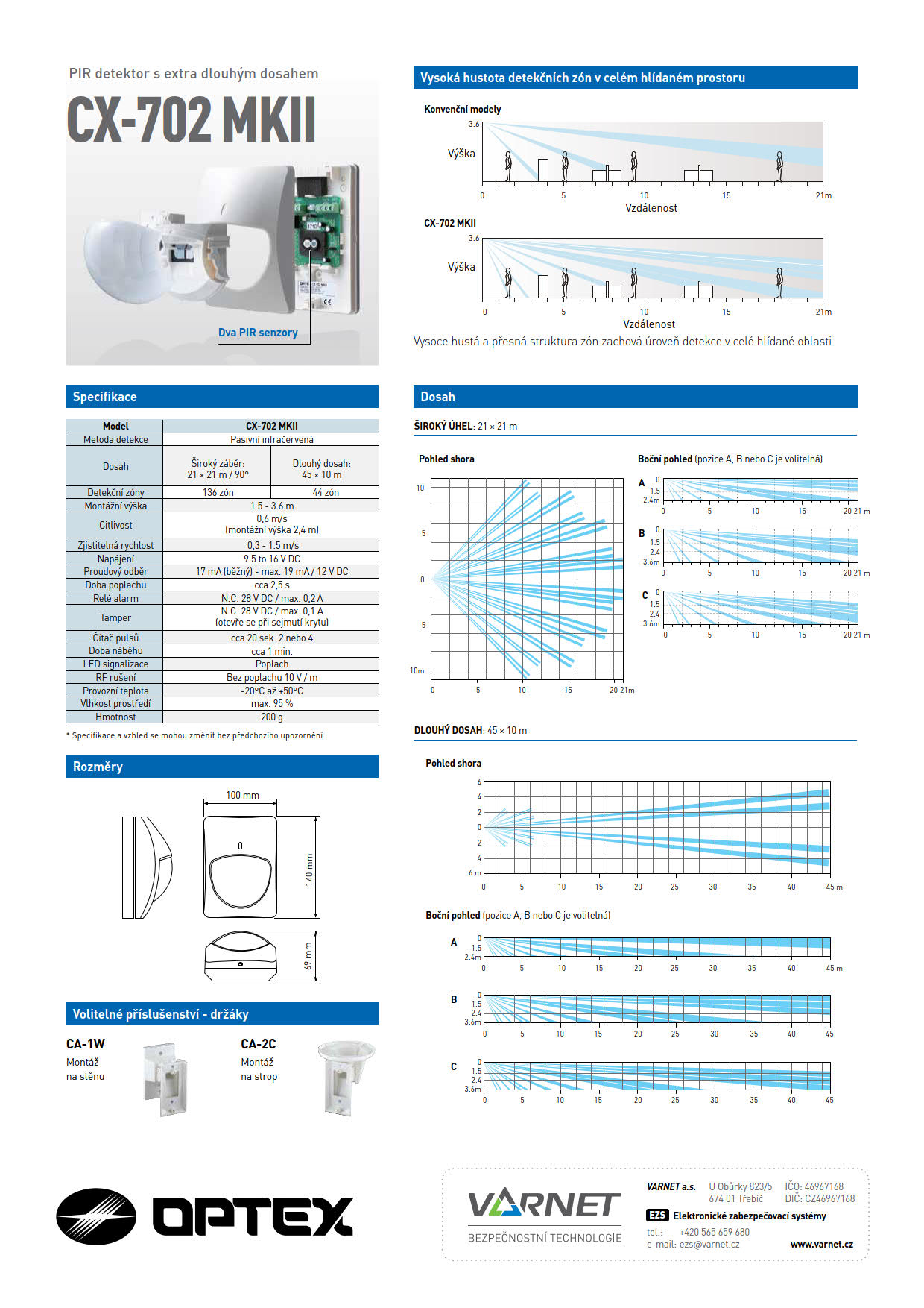 2x PIR, spodní vidění, inst až 3,5m, dosah 21/45 m