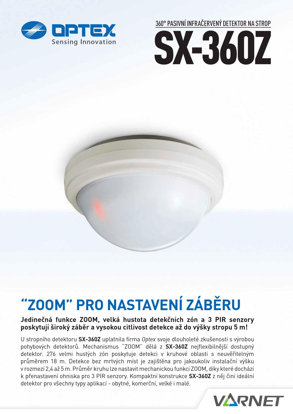 Pokrytí: průměr 18m v celém inst. rozsahu (ZOOM)
