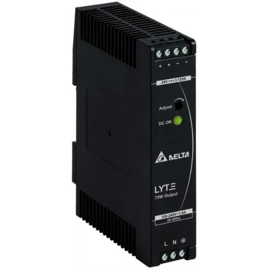 Napájecí zdroj 48Vdc/1,57A 75W, průmyslové provedení s rozšířeným rozsahem pracovní teploty -20°až 70°, montáž na DIN, rozměry 123,6 x 27 x 102 mm