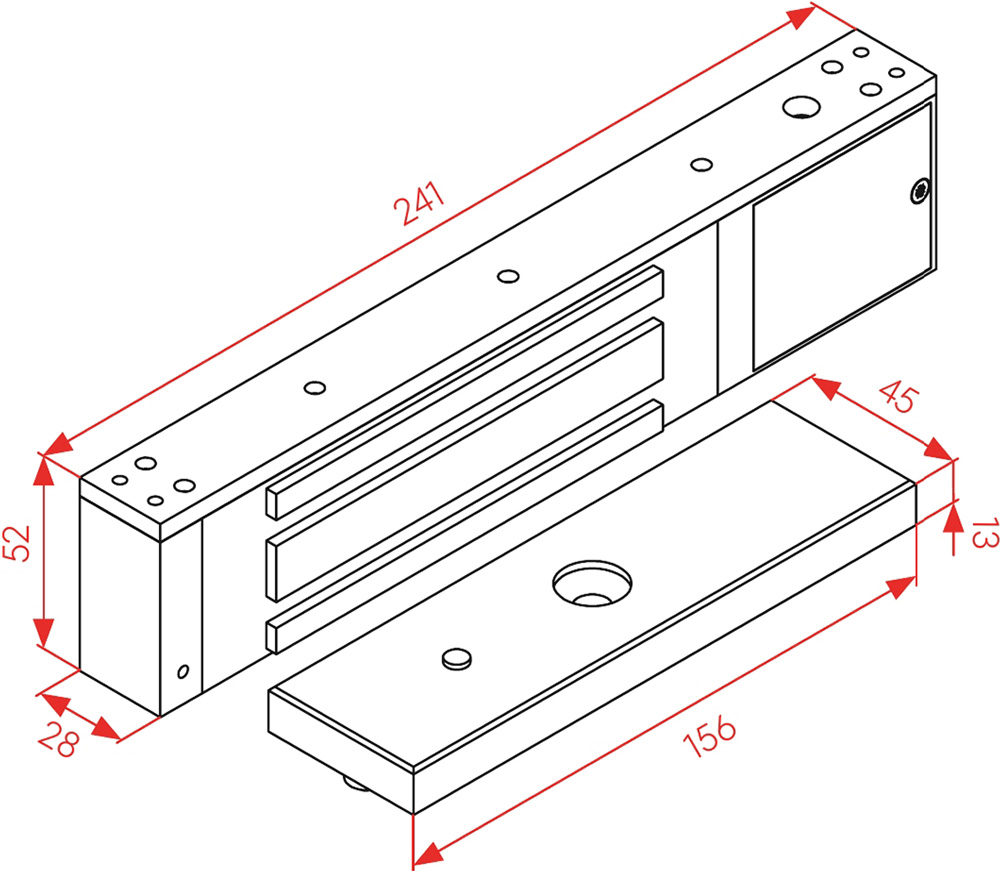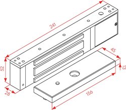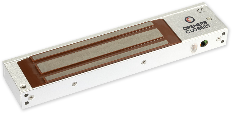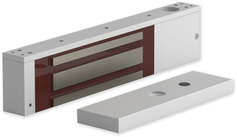 Elektrický přídržný magnet. Pro uzamčení dveří musí být trvale připojeno napájecí napětí. Obsahuje spínací elektroniku s LED indikací, časovačem odblokování a galvanicky odděleným ovládacím vstupem. Navíc je magnet doplněn o releový výstup indikující stav dveří. Dodává se s ocelovým protikusem a montážním příslušenstvím.