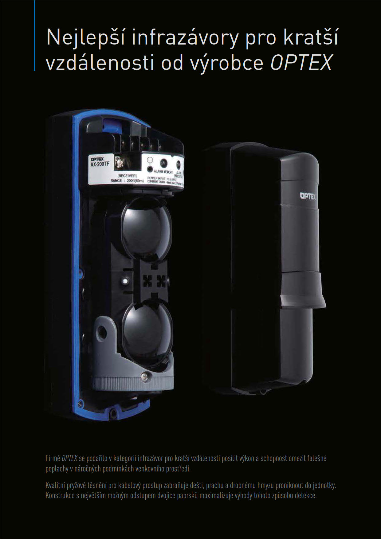 2 paprsková nesynchronizovaná infrazávora. Systém AGC kontroluje změny intenzity signálu a podle toho upravuje citlivost přijímače.