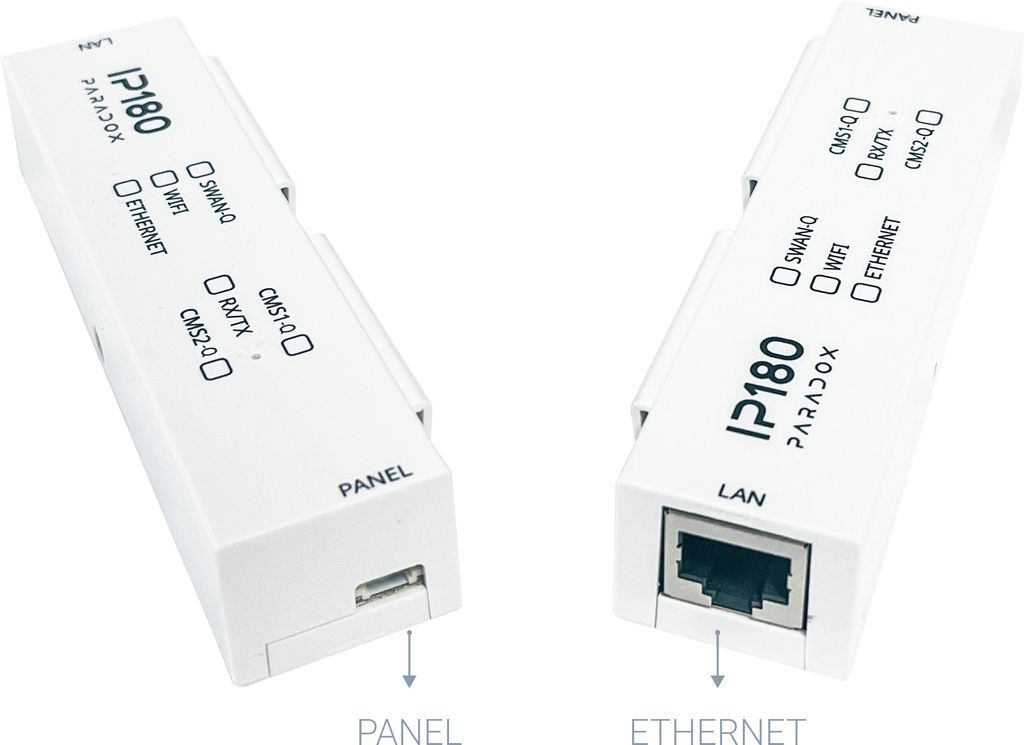 Modul určený pro komunikaci s ústřednami SP/MG/EVO přes INTERNET formátem MQTT. Připojení na internet je datovým kabelem s RJ45 nebo WiFi. Modul automaticky naváže spojení se SWAN serverem a umožní přímou komunikaci s uživatelskou aplikací BlueEye nebo instalačním softwarem BabyWare. Pro přenos dat na PCO / DPPS je potřeba aby na straně pultu byl datový přijímač IPC10. Modul může posílat informace o systémových událostech prostřednictvím emailu.