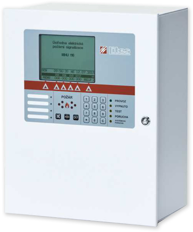 Elektronika ústředny je zabudována v plechové skříni s víkem. V horní části víka je panel s grafickým displejem 320x240 bodů, signalizačními diodami a ovládacími tlačítky. Uvnitř skříně jsou desky s elektronikou, osazené (vyjma silových prvků) prvky pro povrchovou montáž. Obsluha ústředny se provádí pomocí multifunkčních tlačítek a ovládacího menu ve 4 stupních přístupu (dle ČSN EN 54-2) znemožňující zásah nepovolaných osob do systému. Ústředny jsou modulárně řešeny. Sloty desky systémové a desky zdrojové mají přednastavené umístění. Ústředna MHU 116 obsahuje 6 uživatelských slotů, ústředna MHU 117 12 uživatelských slotů pro osazení volitelných desek - desky adresných linek, desky konvenčních smyček, desky vstupů a výstupů, desky pro připojení zařízení master a slave, desky periferií pro připojení nadstavby, ZDP, OPPO, desky pro dálkový servisní přístup pomocí GSM nebo ethernetu. Deska linková obsahuje dvě kruhové linky, z nichž každá umožňuje připojení 128 adresovatelných hlásičů a linkových prvků. Linku kruhovou je možné rozdělit na dvě linky jednoduché. Hlásiče a prvky se připojují na vedení hlásicí linky paralelně, vedení linek lze větvit. Číslo prvku (adresa) se nastavuje pomocí přípravku adresovacího MHY 536 (MHY 535). Deska smyček obsahuje 12 konvenčních smyček pro připojení až 25 neadresovatelných hlásičů. V systému je možné propojit až 16 ústředen a tabel obsluhy. Všechny tyto ústředny a tabla zobrazují informace o celém systému a umožňují jeho plné ovládání, pokud není konfiguračním programem systém rozdělen na podsystémy. K ústředně je možno připojit tiskárnu, konfigurační PC, PC nadstavbu, ZDP, OPPO a KTPO.Portem vzdáleného zobrazení je možné zobrazit stav systému na PC, mobilním telefonu nebo tabletu. Pomocí konfiguračního programu lze tvořit vzájemné vazby mezi jednotlivými vstupy a výstupy všech ústředen v systému (např. bodové a tlačítkové hlásiče, vstupní/výstupní prvky na hlásicích linkách, desky vstupů a výstupů). Ústředna MHU 117 (bez dveří, plné osazení moduly).
