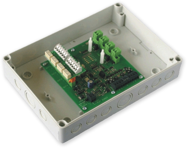 Výstupy jsou typu otevřený kolektor a jsou určené pro přímé ovládání externích zařízení (např. siréna, maják) nebo pro ovládání přídavných relé. Pro menší spínané výkony je možno na každý pár otevřených kolektorů osadit modul 6XK 199 722 se dvěma relé nebo použít samostatné relé umístěné u ovládaného zařízení. U jednotlivých výstupů typu otevřený kolektor je možné nastavit hlídání zkratu a přerušení. Jednotka výstupů obsahuje 8 výstupů. Sedm výstupů je uživatelských, osmý slouží jako výstup systémové poruchy, který je v klidu aktivovaný. Tento výstup nelze uživatelsky nastavit. Ve speciálním nastavení ústředny Výstup stavu umožňuje Jednotka výstupů automatickou aktivaci výstupů v závislosti na aktuálním stavu ústředny. Jednotka výstupů je vybavena zkratovým izolátorem linky RS 485. Jednotka výstupů je deska elektroniky se svorkovnicemi umístěná v plastové krabici s víkem, s předlisovanými otvory určenými pro montáž kabelových průchodek. Jednotka výstupů se dodává ve dvou variantách lišících se osazením výstupů: Výstupy typu otevřený kolektor a výstupy s moduly relé lze podle potřeby kombinovat. Jednotku výstupů a připojená ovládaná zařízení je možno napájet: Zatížitelnost každého výstupu je 0,3 A s tím, že součet proudů všech výstupů je max. 0,5 A při napájení z ústředny a max. 2 A při napájení z externího zdroje. Jednotka výstupů a ovládaná zařízení mohou být napájeny z ústředny, z externího zdroje, případně může mít ovládané zařízení svůj vlastní zdroj. Jsou možné tyto kombinace: MHY 918/K - 8 výstupních konektorů CF 5,08/2 pro využití výstupů jako otevřený kolektor (použití např. jako jednotka hlídaných sirénových výstupů). MHY 918/R - 4 moduly 6XK 199 722 se dvěma relé pro využití výstupů jako přepínací bezpotenciálový kontakt (použití např. jako přímá náhrada reléové skříně MHY 907). z připojené ústředny z externího zálohovaného zdroje – nutno použít v případě, kdy jsou z Jednotky výstupů napájeny externí ovládaná zařízení a úbytek na napájecím vedení je větší než připouští technické parametry, nebo je odběr celkové zátěže větší než 0,5 A. Jednotka výstupů a ovládaná zařízení jsou napájeny z ústředny Jednotka výstupů je napájena z ústředny a ovládaná zařízení z externího zdroje Jednotka výstupů a ovládaná zařízení jsou napájena z externího zdroje Jednotka výstupů je napájena z ústředny a ovládané zařízení má vlastní zdroj Jednotka výstupů je napájena z ústředny a ovládané zařízení je ovládáno pomocným relé