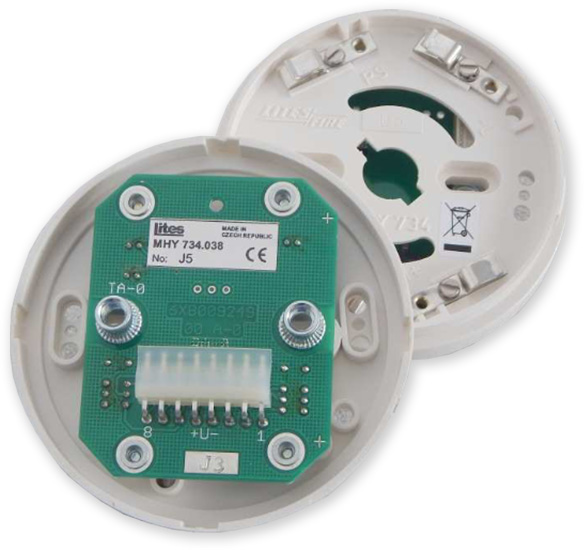 Zásuvka MHY 734.038 je určena pro připojení optických a kombinovaných interaktivních hlásičů požáru MHG 262V, MHG 862V (MHG 261V, MHG 861V) k autonomní signalizaci požáru tam, kde z důvodu výskytu vibrací nelze použít zásuvku MHY 734.037 se šroubovou svorkovnicí (např. v kolejových vozidlech). Zásuvka je vybavena krimpovacím konektorem. Výstupem zásuvky je poplachové a poruchové relé. Při aktivaci hlásiče sepne poplachové relé a rozsvítí se červené LED na hlásiči. Poruchové relé je v klidovém stavu sepnuto. K rozepnutí relé dojde při vyjmutí hlásiče ze zásuvky, přerušení napájení nebo v případě zaprášení hlásiče, kdy již by nebyla funkce hlásiče spolehlivá. Zásuvka autonomní je napájena z externího zdroje. Ukončení signalizace Požár a uvedení zásuvky do klidového stavu se provádí přerušením přívodu napájecího napětí. Při použití zásuvky MHY 734.038 s hlásičem MHG x6xV lze využít možnosti nastavení interaktivního hlásiče pomocí přípravku adresovacího MHY 536 (citlivost, doba reakce atd.). Autonomní zásuvka s hlásičem MHG x6xV není vhodná do prostorů se zvýšenou prašností.