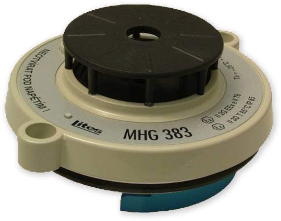Hlásič teplot MHG 383 je samočinný hlásič určený pro automatickou signalizaci požáru jako detektor teplot v analogovém a adresovatelném systému elektrické požární signalizace LITES. Je určen především pro prostředí s nebezpečím výbuchu, případně pro takové prostředí bez nebezpečí výbuchu, které vyžaduje vyšší mechanickou odolnost hlásiče. Reaguje na dosaženou teplotu a změnu teploty před požárem nebo při něm. Hlásič smí pracovat: Hlásič MHG 383 je určen pro spolupráci s analogovými ústřednami MHU 110, MHU 111, případně s adresovatelnou ústřednou MHU 109. Hlásič obsahuje program, který na základě měření okolní teploty vyhodnocuje požárovou situaci, a to podle následujících nastavitelných parametrů: Dále lze nastavit vyhlašování předpoplachu v rozmezí 3°C až 24°C před vyhlášením požáru (platí pouze pro ústředny MHU 110 a MHU 111). Pokud jsou vyhodnocované teploty příliš nízké, vysoké, nebo nedávají smysl, hlásič vyhlásí poruchu. Nastavitelné parametry se zadávají buď do konfiguračního programu a nahrávají do hlásiče prostřednictvím ústředny (MHU 110 a MHU 111), nebo se programují přímo pomocí přípravku MHY 535 (MHU 109). K vedení požární linky se hlásič připojuje pomocí svorkovnice MHY 703, případně mimo prostředí s nebezpečím výbuchu pomocí MHY 713. Hlásič vyhovuje normě ČSN EN 54-5. Pro použití v EPS podléhá posuzování shody podle zákona č. 22/1997 Sb., ve znění zákona č. 71/2000 Sb. a příslušných nařízení vlády. Pro použití v prostředí s nebezpečím výbuchu hlásič podléhá schválení FTZÚ v Ostravě - Radvanicích A0 210. v zóně 1 a 2 prostoru s nebezpečím výbuchu plynů podle ČSN EN 60079-14 v zóně 22 prostoru hořlavých prachů podle ČSN EN 50281-1-2 v prostoru V1, V2, V3 s nebezpečím požáru nebo výbuchu výbušin podle ČSN 33 2340 prahová teplota, při jejímž dosažení dojde k vyhlášení požáru; lze ji nastavit v rozmezí od 45 °C do 90 °C po 3 °C změna teploty, po které dojde k vyhlášení požáru (tzv. diferenciální část); lze ji nastavit v rozmezí od 10 °C do 45 °C po 5 °C, případně reakci na změnu teploty nepovolit minimální průměrná rychlost (strmost) nárůstu teploty, aby došlo k reakci diferenciální části, pokud je povolena; lze ji nastavit na cca 3 °C/min a 10 °C/min minimální teplota, která musí být při vyhlášení požáru dosažena i při reakci diferenciální části; lze ji nastavit od 0 °C až po prahovou teplotu v sedmi ekvidistantních krocích