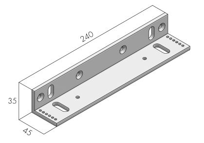 Montážní příslušenství magnetické přídrže MEX280SV3. Držák tvaru "L" slouží pro dveře s úzkými zárubněmi, které se otevírají směrem VEN.