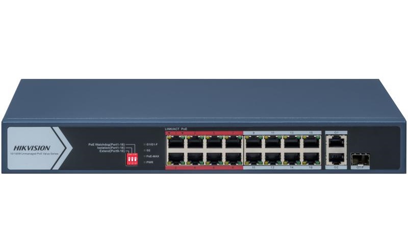 dva pracovní režimy: Standard 16x 100 Mbps na 100m a Extended mode porty 1-8 10Mbps až na 300m, celkový výkon PoE 130W(max.30W na 1 port)