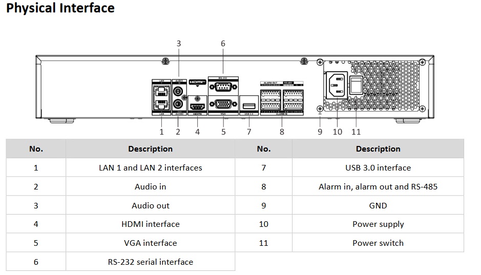 1x RS-485, 1x RS-232, 1x eSATA