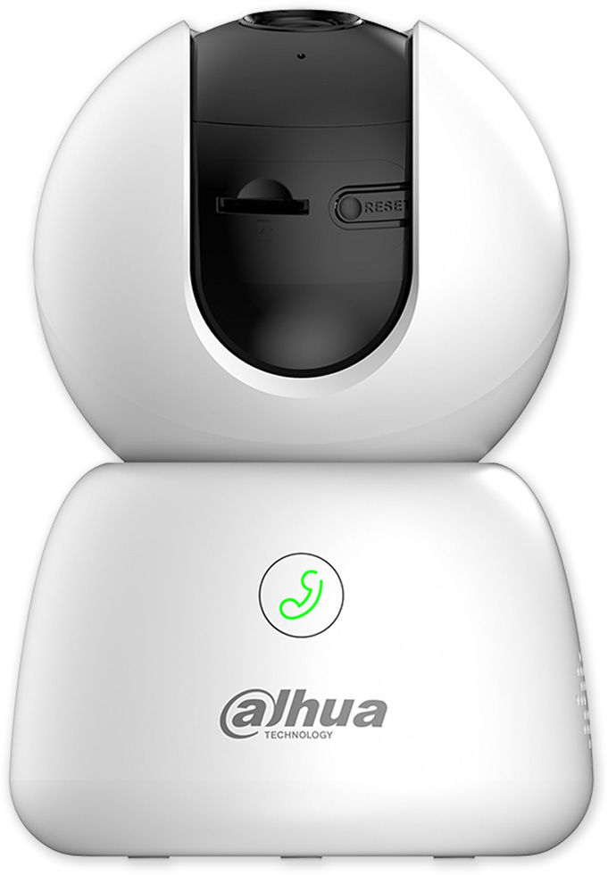 Vnitřní PT kamera řady WiFi Series, instalace a ovládání mobilní aplikací DMSS, detekce osob, automatické sledování, detekce abnormálního zvuku, aktivní volání jedním klikem, integrovaný mikrofon a reproduktor (možnost obousměrné audiokomunikace), slot pro micro SD kartu, napájení USB (Type-C) 5 VDC (zdroj součástí).