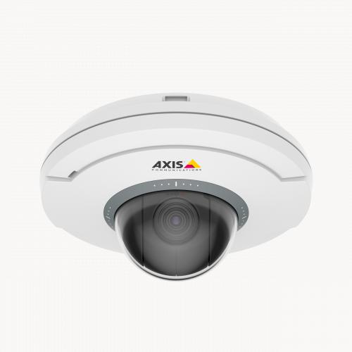 Stropní mini PTZ dome kamera s 5x optickým zoomem a automatickým ostřením, HDTV 720p (1280x720) 30fps v H.264/H.265 se Zipstream a Motion JPEG. Ochrana IP51 proti prachu a vodě. Obsahuje vestavěný mikrofon, obsahuje vestavěnou analytiku, jako je detekce křiku. Pouze PoE. Přiložené držáky pro montáž na strop