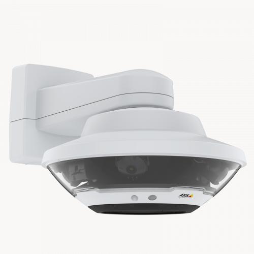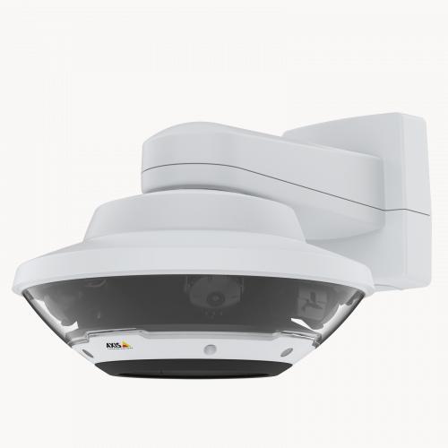 Venkovní 360° situační kamera, která se skládá ze 4x5MP senzorů při 20 snímcích za sekundu v H.264/H.265 Zipstream a Motion JPEG. Pohyblivé senzory s výměnnými objektivy. Autofocus, D/N. Směrová detekce zvuku. Navrženo pro integraci s jakoukoli kamerou řady AXIS Q61 pro pokrytí velké plochy a současné zobrazení zoomu pomocí ovládací funkce PTZ jedním kliknutím. Plná velikost slotu pro SD kartu. Nevyžaduje žádné další vybavení, protože používá stejné držáky, napájecí zdroj a síťový kabel jako připojený AXIS Q61