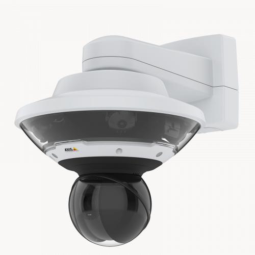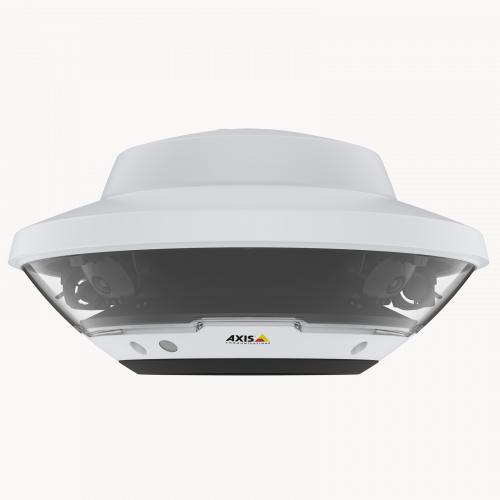 Venkovní 360° situační kamera, která se skládá ze 4x5MP senzorů při 20 snímcích za sekundu v H.264/H.265 Zipstream a Motion JPEG. Pohyblivé senzory s výměnnými objektivy. Autofocus, D/N. Směrová detekce zvuku. Navrženo pro integraci s jakoukoli kamerou řady AXIS Q61 pro pokrytí velké plochy a současné zobrazení zoomu pomocí ovládací funkce PTZ jedním kliknutím. Plná velikost slotu pro SD kartu. Není třeba žádné další vybavení, protože používá stejné držáky, napájecí zdroj a síťový kabel jako připojená AXIS Q61.