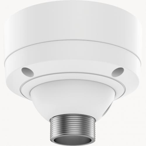 Vnitřní/Venkovní kamera stropní držák je ideální pro instalace s nízkým stropem, jako jsou parkovací domy, s otočnou akcí, která zabraňuje rozbití v případě nárazu. Lze namontovat do šikmých stropů/podhledů pro vyrovnání úhlů až 45 stupňů. Dostupné prodlužovací trubky příslušenství (nejsou součástí balení) o délce 30 cm (12”) nebo 1 metr (39”), které umožňují správnou výšku kamery pro konkrétní prostředí. Kompatibilní se všemi závěsnými sadami Axis se závitem 1,5” NPS a držákem Kamery AXIS T91A05 pro pevné Kamery.