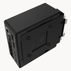 DIN klip + úhlový montážní držák. Umožňuje montáž hlavní jednotky řady AXIS F na lištu DIN s krátkou stranou proti liště pro minimalizaci využitého prostoru. Hlavní jednotku lze namontovat pomocí kabelů vedoucích v libovolném ze tří směrů (nahoru, dolů nebo ven z kolejnice).