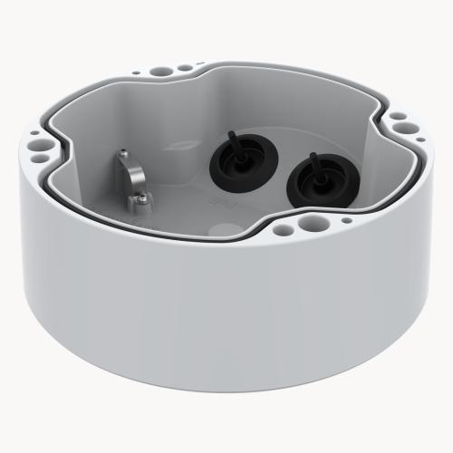 Zadní skříň potrubí, která poskytuje více prostoru potřebného pro instalaci. Hlubší zadní box, než s jakým produktem přichází a stávající zadní boxy potrubí. Kompatibilní s P1455-LE, P1467/8-LE. Dodává se v bílé barvě Axis a je IP66 a IK10.