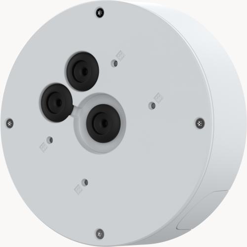 Venkovní, nárazuvzdorná zadní schránka (IK11) s uzavřenou přihrádkou (IP66/67) pro bezpečné uložení zařízení pro připojení. 3/4" / M25 rozhraní potrubí z obou stran a zezadu. Lze namontovat přímo za osy P3807-PVE, AXIS P3818-PVE, AXIS P3827-PVE, AXIS Q3536-LVE, AXIS Q3538-LVE, AXIS Q3626-VE, AXIS Q3628-VE, AXIS Q3819-PVE, AXIS Q3839-PVE. Obsahuje síťový kabel a další těsnění.