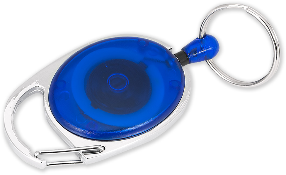 Roller klip s navijákem z ABS plastu s kovovými doplňky, má karabinku a klíčový kroužek na který lze připevnit RFID čip, případně kartu umístěnou v krytu s ouškem. Šňůrka se dá natáhnout do délky 55 cm.