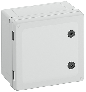 Skříňový rozvaděč, vhodný pro instalaci v zátěžovém prostředí a v nechráněném venkovním prostředí, krabice a rám: polykarbonát vyztužený skleněnými vlákny, šedý, podobný RAL 7035, dvířka: Polykarbonát. rozvaděčové zamykání 3 mm dvojzub (možnost výměny) podle DIN 43668, s šedými dvířky Rozměry: 300 x 300 x 180 mm