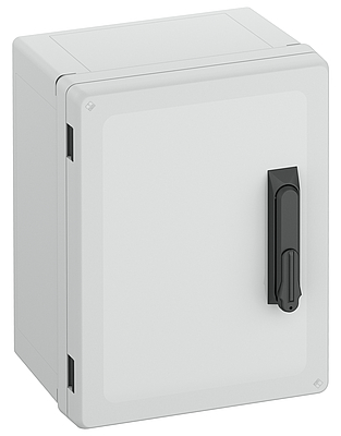 Skříňový rozvaděč, vhodný pro instalaci v zátěžovém prostředí a v nechráněném venkovním prostředí, krabice a rám: polykarbonát vyztužený skleněnými vlákny, šedý, podobný RAL 7035, dvířka: Polykarbonát. půlválcová vložka dle DIN 18252, s šedými dvířky Rozměry: 300 x 400 x 226 mm