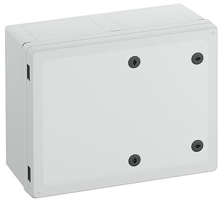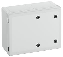 Skříňový rozvaděč, vhodný pro instalaci v zátěžovém prostředí a v nechráněném venkovním prostředí, krabice a rám: polykarbonát vyztužený skleněnými vlákny, šedý, podobný RAL 7035, dvířka: Polykarbonát. rozvaděčové zamykání 3 mm dvojzub (možnost výměny) podle DIN 43668, s šedými dvířky Rozměry: 500 x 400 x 226 mm