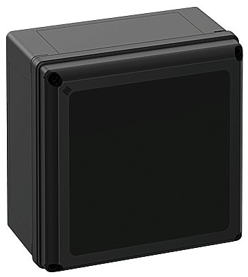 Prázdná skříň, vhodná pro instalaci v zátěžovém prostředí a v nechráněném venkovním prostředí, krabice: polykarbonát vyztužený skleněnými vlákny, černý, podobný RAL 9005, víko: polykarbonát, s černým víkem Rozměry: 300 x 300 x 180 mm