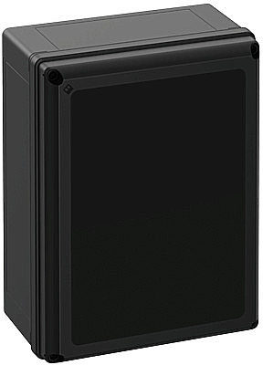 Prázdná skříň, vhodná pro instalaci v zátěžovém prostředí a v nechráněném venkovním prostředí, krabice: polykarbonát vyztužený skleněnými vlákny, černý, podobný RAL 9005, víko: polykarbonát, s černým víkem Rozměry: 300 x 400 x 180 mm