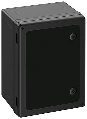 Skříňový rozvaděč, vhodný pro instalaci v zátěžovém prostředí a v nechráněném venkovním prostředí, krabice a rám: polykarbonát vyztužený skleněnými vlákny, černá, podobný RAL 9005, dvířka: Polykarbonát. rozvaděčové zamykání 3 mm dvojzub (možnost výměny) podle DIN 43668, s černými dvířky Rozměry: 300 x 400 x 226 mm