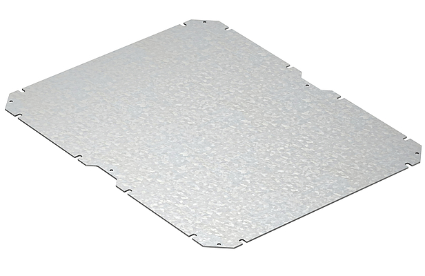 Montážní deska z ocelového plechu, včetně upevňovacích šroubů, k montáži na podlahu, Volitelně možná montáž pomocí montážního držáku v různých výškách, pro GEOS-L/-S 4050-22, GEOS-S 5040-22 Rozměry: 350 x 450 x 2 mm