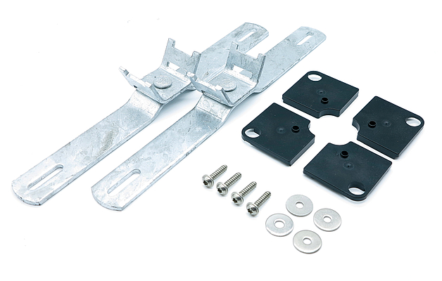 Sada stožárových svorek z žárově pozinkované oceli, sada=2 kusy, Montáž na straně krytu 300mm Rozměry: 35 x 300 x 40,5 mm
