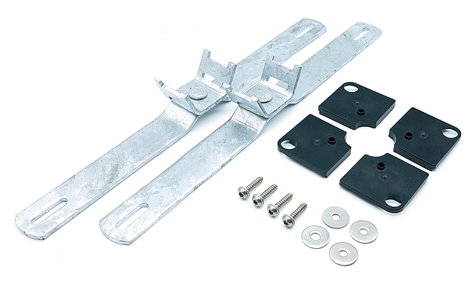 Sada stožárových svorek z žárově pozinkované oceli, sada=2 kusy, Montáž na straně krytu 400mm Rozměry: 35 x 400 x 40,5 mm