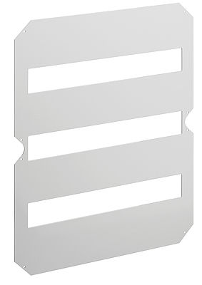 Ochrana proti dotyku přístroje montované v řadě, vč. upevňovacích šroubů, k montáži do prázdného pláště GEOS-L, 3 řady, 54 modulů, k montáži do prázdného pláště GEOS-L 4050 Rozměry: 376 x 476 x 2 mm