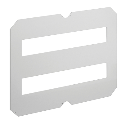 Ochrana proti dotyku přístroje montované v řadě, vč. upevňovacích šroubů, k montáži do prázdného pláště GEOS-L, 2 řady, 42 modulů, k montáži do prázdného pláště GEOS-L 4050 Rozměry: 376 x 476 x 2 mm