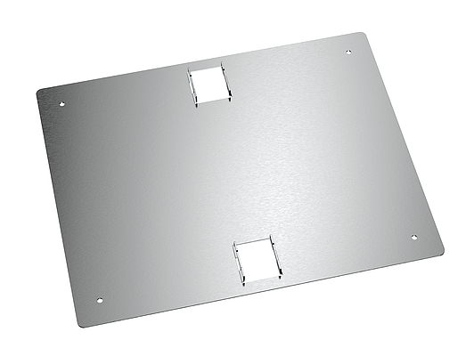 Deska z nerezové oceli pro montáž na sloup  V4A, 1 kus , pro připevnění skříně GEOS 5040 na sloup pomocí sady šroubových spojek SRS Rozměry: 493,5 x 393,5 x 2 mm