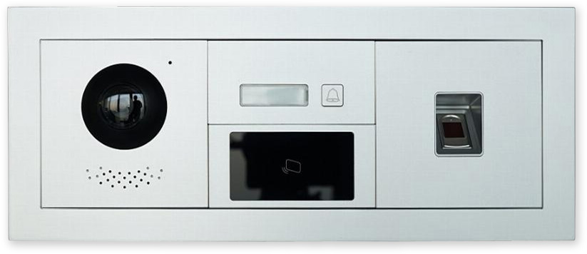 Hlavní IP dveřní modul s kamerou se širokým úhlem záběru, IR přisvícení. Modulární konstrukce, RJ-45 nebo 2 vodičový systém. Součástí je reproduktor, mikrofon a 1x relé pro ovládání dveřního zámku.