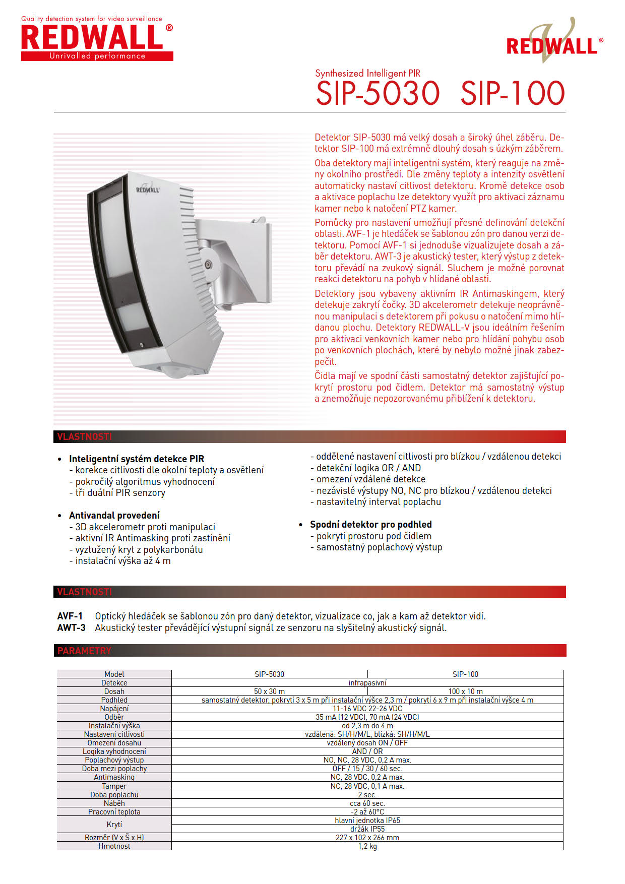 Infrapasivní detektory RedWall slouží pro detekci pohybu na velkou vzdálenost. Detektor je osazený zrcadlovou optikou, třemi PIR senzory, akcelerometrem pro detekci manipulace s detektorem, aktivním IR anitmaskingem pro detekci zastínení, tepelným a světelným senzorem pro korekci citlivoasti. U detektoru lze odděleně nastavit citlivost pro krátkou a pro větší vzdálenost. Spodní podhled s plochou záběru 5 x 5 m zbraňuje podlezení detektoru. Celý detektor je v krytu odolném proti poškození a proti povětrnostním vlivům. Dtektory s dlouhým dosahem RedWall se používají pro spínání záznamu CCTV nebo pro detekci vniknutí na pozemek.