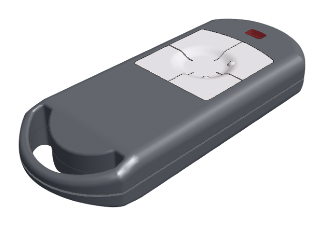 Miniaturní vysílač pracující na frekvenci 433 MHz s TF kódováním se 4 tlačítky s integrovaným čipem s továrním kódem TF pracujícím na frekvenci 125 kHz. Vysílač používá technologii plovoucího kódu.