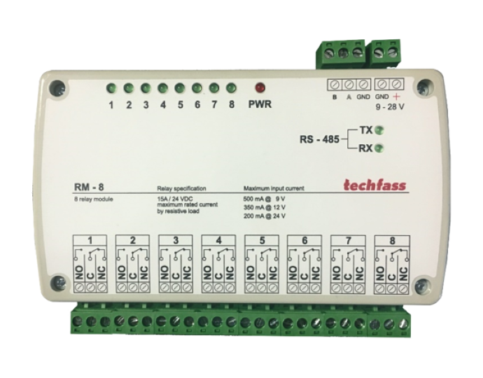 RM-8 je osmi kanálový relé modul, který je řízen čtecím modulem MREM 82 MTMBOX-MF, který může být součástí sběrnice APS mini Plus systému. Modul může ovládat až osm zařízení jako jsou zámky poštovních schránek, světla nebo jakékoli zařízení, které je možno ovládat přes relé v rozsahu bezpečných napětí (<60Vdc).