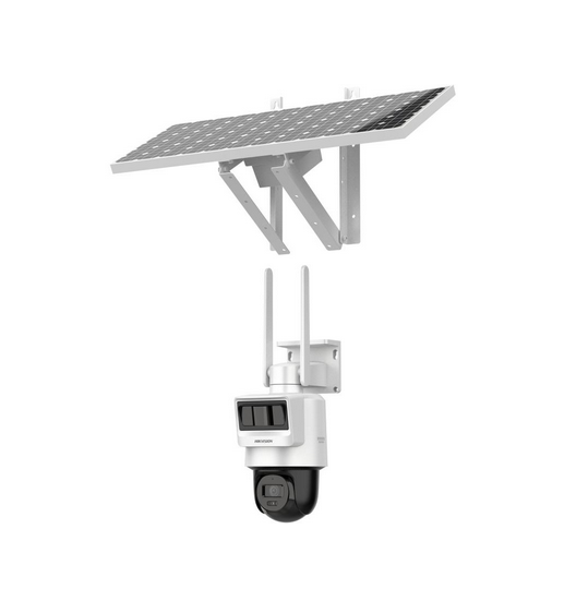 4G LTE IP PT kamera s pevným objektivem a solárním napájením, rozlišení 4 Mpx, objektiv f2,8 mm, integrovaný mikrofon a reproduktor, horizontální úhel záběru 94°, WDR 120dB, IR přísvit do 30 m, citlivost 0.005 Lux @ (F1.6, AGC ON), 0 Lux s přísvitem, integrovaný mikrofon a reproduktor. Detekce na základě PIR a Radaru, úhel detekce: Horizontal: 80°, Vertical: 30°. Detekční vzdálenost 12m. Tato kamera je vhodná do míst bez přítomnosti zdrojů napájení. Pokud je baterie plně nabitá, může v deštivých nebo zamračených dnech fungovat až 48 hodin, dobíjecí lithiová baterie se životností až 800 cyklů, kapacita baterie 90 Wh (baterii nelze vyměnit, podpora správy baterie, displeje baterie, ochrany před nízkými teplotami, ochrany proti vybití a vzdáleného probuzení). Slot na micro SD kartu až 512GB, konektivita: 1x 4G LTE, slot na micro SIM (podporované frekvenční pásmo LTE-TDD: Band38/40/41 LTE-FDD: Band1/3/5/7/8/20/28 WCDMA: Band1/5/8 GSM: Band3/5/8)