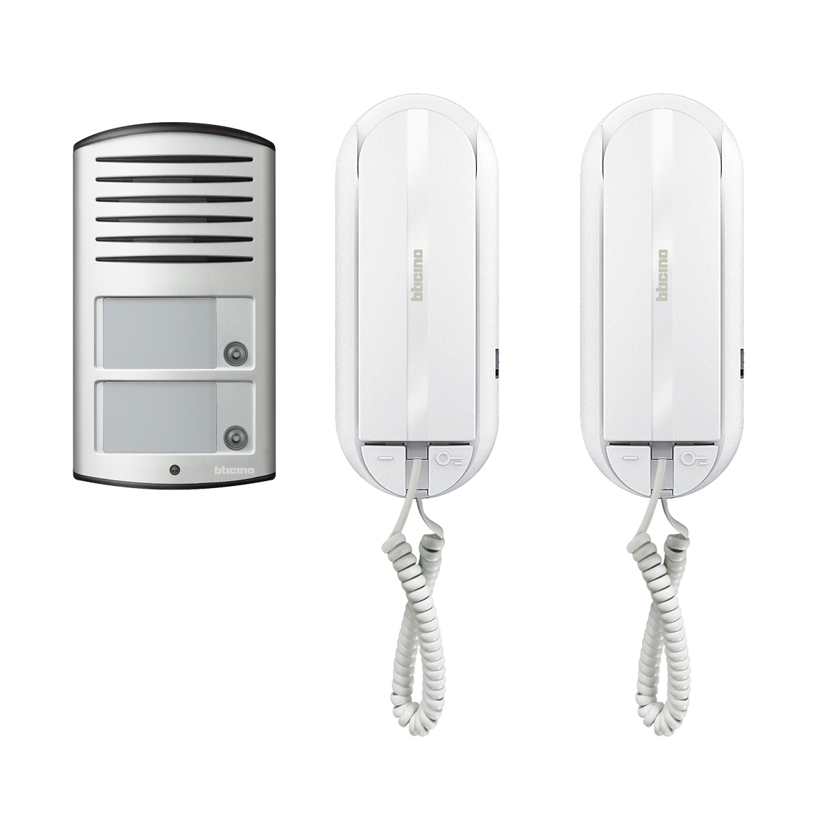 Audio sada pro 2 byty obsahuje 2ks audio telefonu SPRINT L2 a vstupní panel LINEA 2000 se dvěma tlačítky pro povrchovou montáž. El. zámek 12 V lze připojit a napájet přímo ze vstupního panelu. Napájecí zdroj (6 DIN) a potřebné konfigurátory jsou součástí sady. (344232 – přídavné vyzváněcí tlačítko funkční pouze s reléovým rozhraním obj. č. 346833).