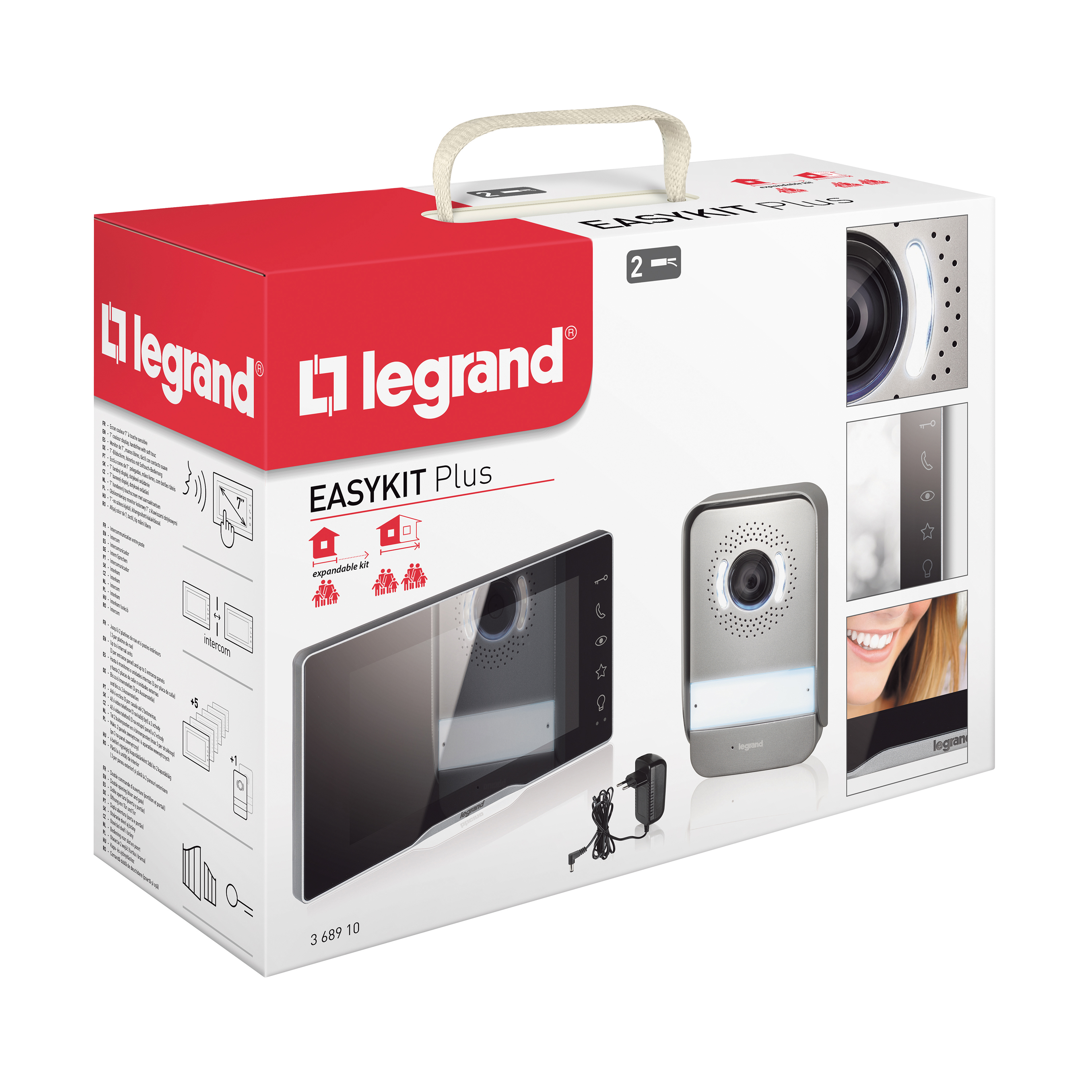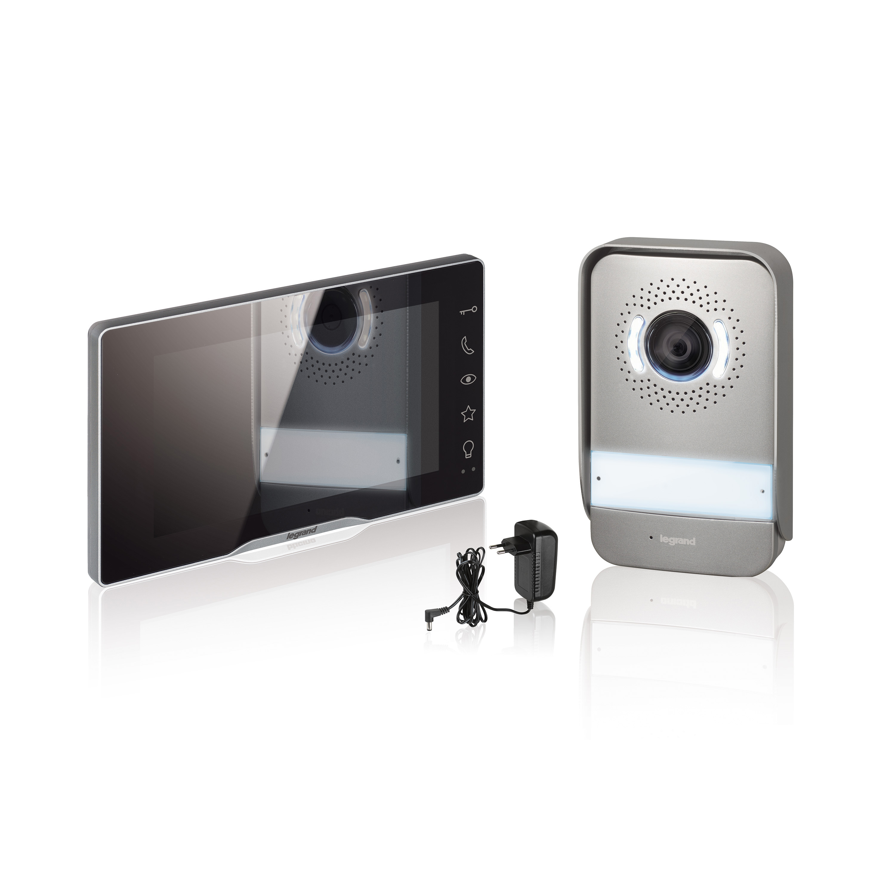 Video sada pro 1 byt obsahuje 7"video telefon v bílo-černé barvě, napájení ze zásuvky 230 V pomocí adaptéru (napájí video telefon i vstupní panel), lze nahradit zdrojem do rozváděče. K dispozici další dva NO kontakty např.: pro garážová vrata. Možnost rozšířit na max. 2 byty (každý se 3 telefony s interkomem), 2 vchody a 2 externí video kamery obj. č.: 369401 (1 kamera na každý vstupní panel, napájená samostatným zdrojem) – video telefony všech provedení jsou vzájemně kompatibilní a lze je kombinovat v jedné instalaci.