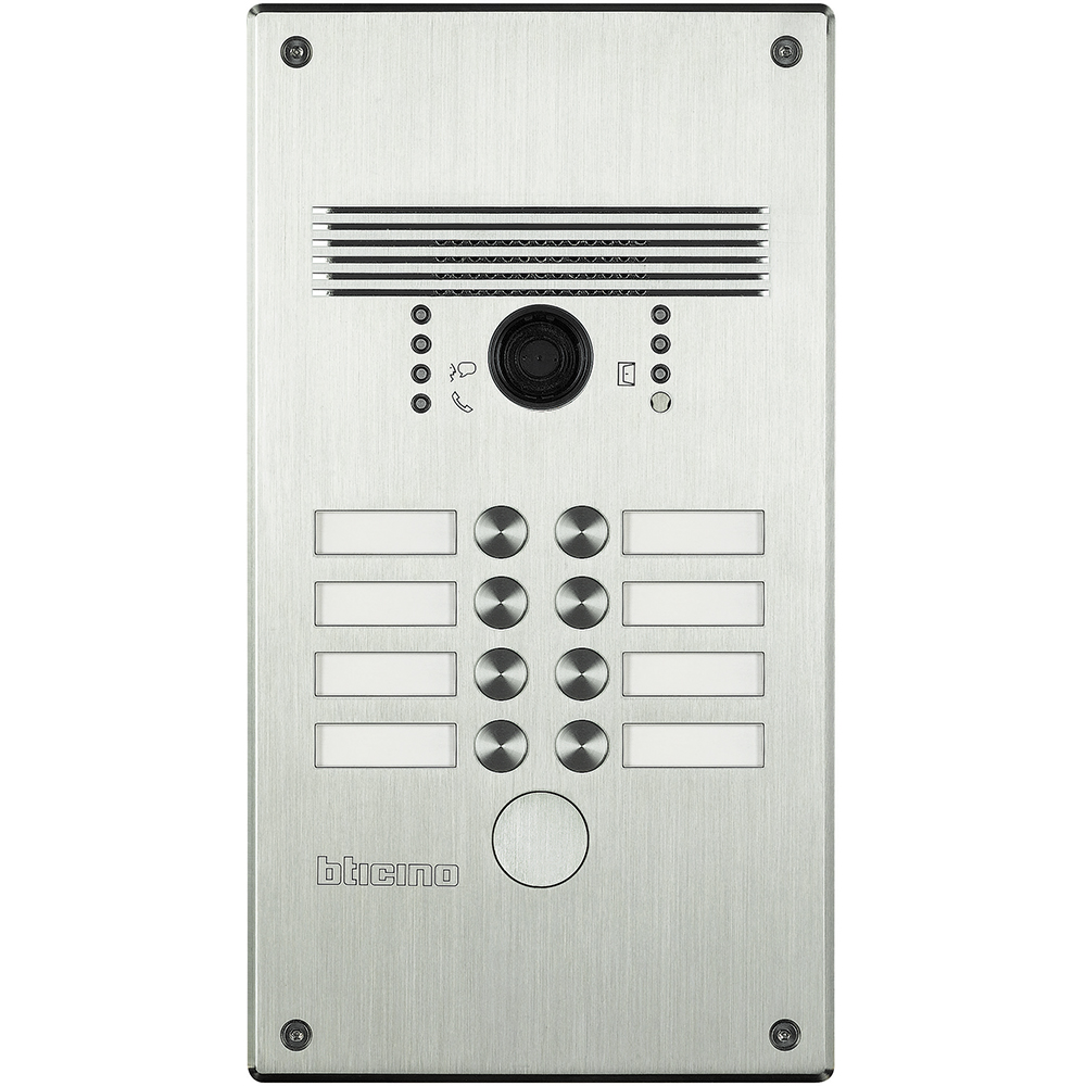 Video vstupní panel LINEA 300 má k dispozici 8x zvonkové tlačítko. Úhel záběru kamery je 124°. Provedení antivandal (nerezová ocel INOX, tloušťka 4mm – IP54, IK 07). Možnost osazení elektronickou čtečkou s centrální administrací