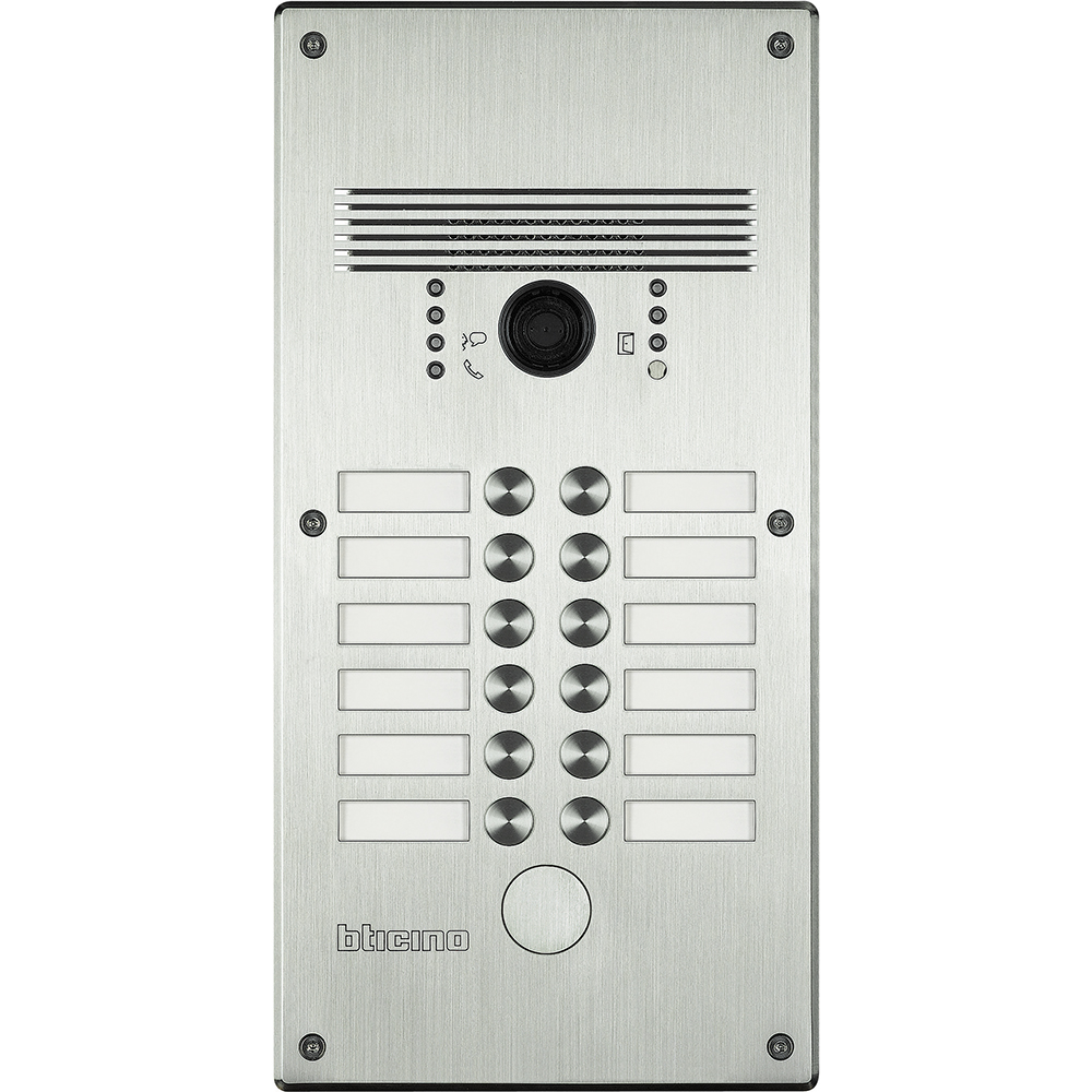 Video vstupní panel LINEA 300 má k dispozici 12x zvonkové tlačítko. Úhel záběru kamery je 124°. Provedení antivandal (nerezová ocel INOX, tloušťka 4mm – IP54, IK 07). Možnost osazení elektronickou čtečkou s centrální administrací