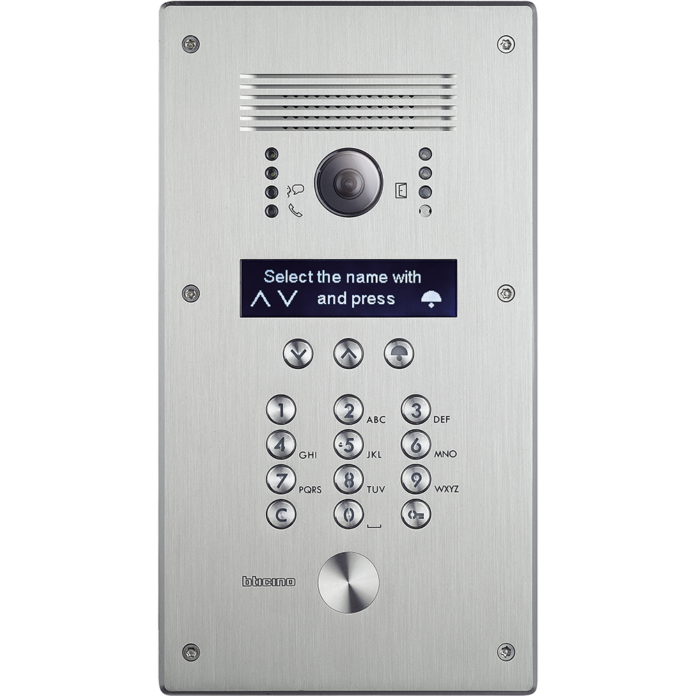 Video vstupní panel LINEA 300 bez tlačítek. Tlačítka nahrazuje klávesnice s grafickým menu na displeji. Úhel záběru kamery je 124°. Provedení antivandal (nerezová ocel INOX, tloušťka 4mm – IP54, IK 07). Možnost osazení elektronickou čtečkou s centrální administrací