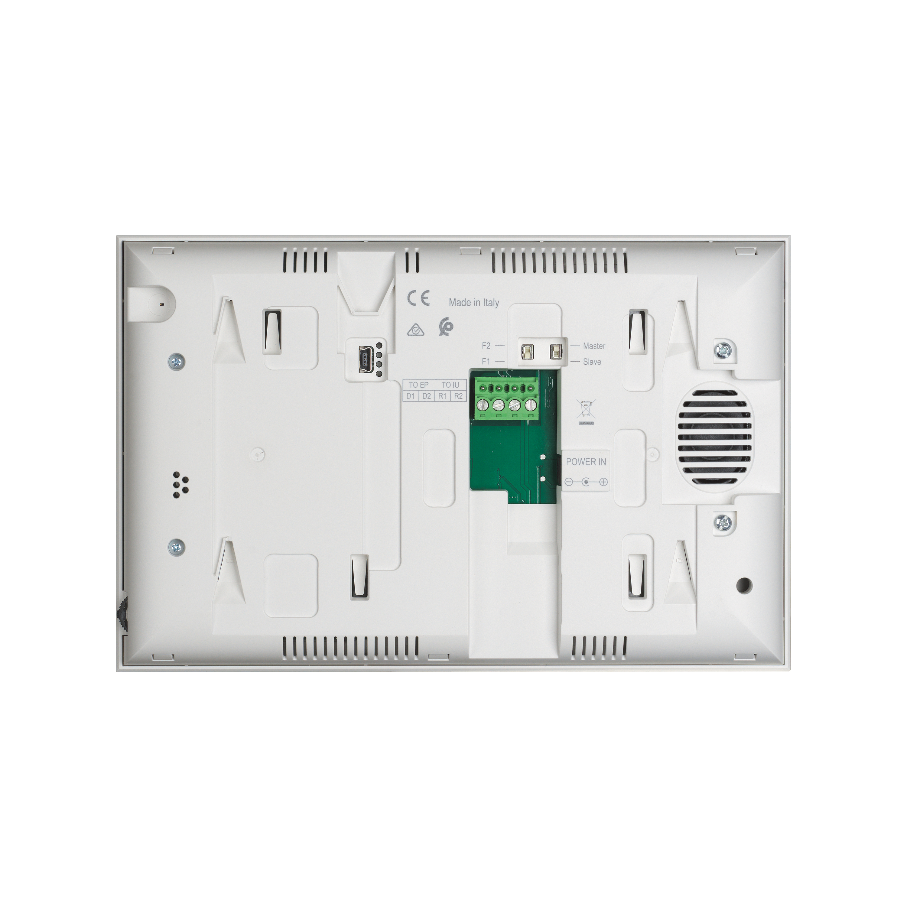 7"video telefon s WI-FI v bílé barvě, napájení ze zásuvky 230 V pomocí adaptéru (napájí video telefon i vstupní panel), lze nahradit zdrojem do rozváděče
