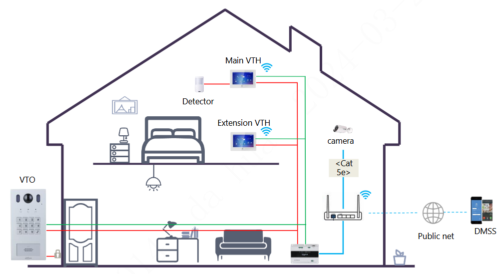 Napájení: Dahua 2-wire switch (max. power supply distance is 50 m) 48 VDC, 1 A; PoE (802.3af/at)