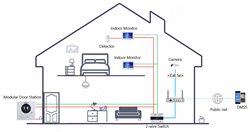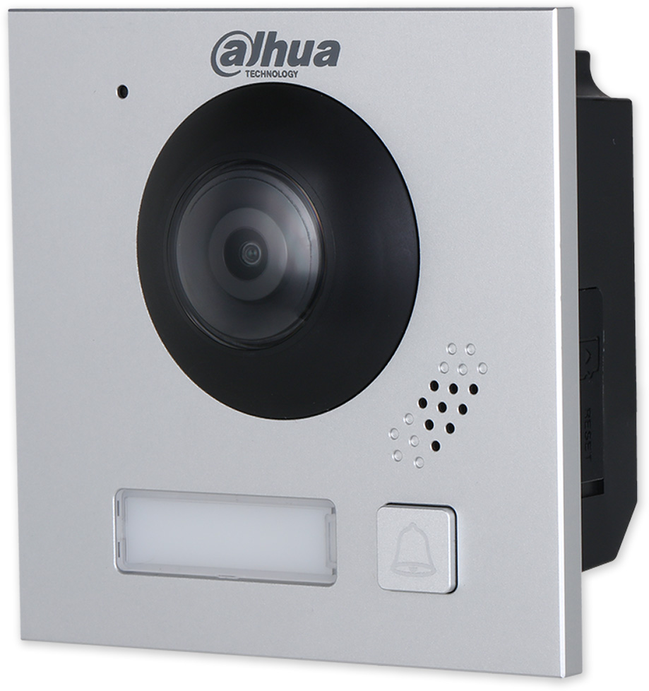 Hlavní IP dveřní modul s kamerou se širokým úhlem záběru, IR přisvícení. Modulární konstrukce, RJ-45 nebo 2 vodičový systém. Součástí je tlačítko zvonku se jmenovkou, reproduktor, mikrofon a 1x relé pro ovládání dveřního zámku.