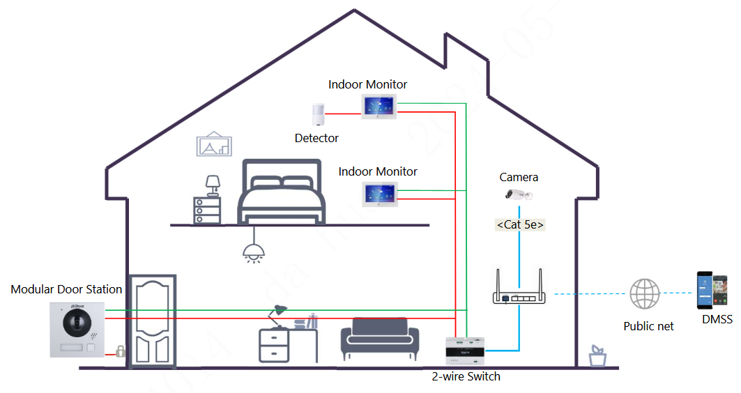Napájení: Dahua 2-wire switch (max. power supply distance is 50 m) 48 VDC, 1 A; PoE (802.3af/at)
