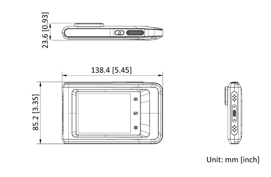 Ruční termografická kamera, rozsah měření teploty -20 až +400°C, rozlišení senzoru 256 x 192 Pixel, optika 50 ° x 37.2, geometrické rozlišení (IFOV) 3,43mrad, displej 3,5 dotykový", rozlišení displeje 640 x 480 Pixel dotykový, přesnost měření 2°C, minimální zaostřovací vzdálenost 0,3m, zabudovaná LED žárovka, teplotní citlivost 50mK, rozhraní USB-C, Wi-FI, Bluetooth, výdrž baterie 4 hodin, nabíjení přes USB-C cca 2,5 hodiny, Vnitřní paměť: 16Gb, rozměry: 138.45 × 85.2 × 23.6 mm, hmotnost: 218g.